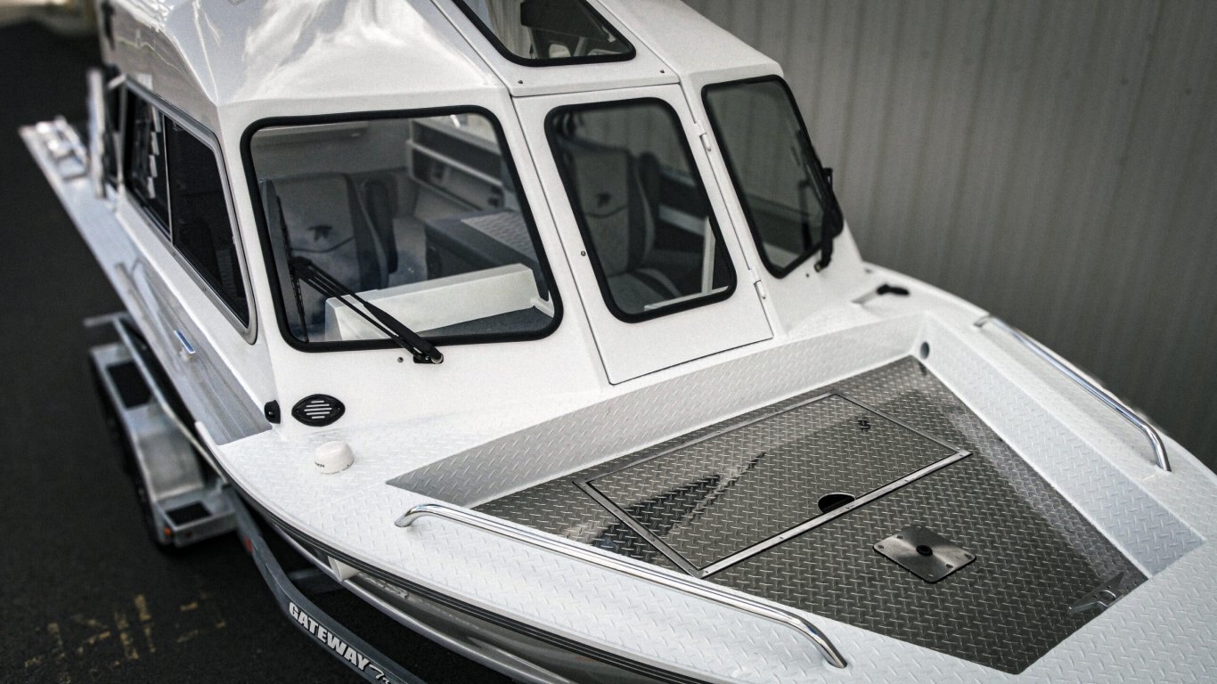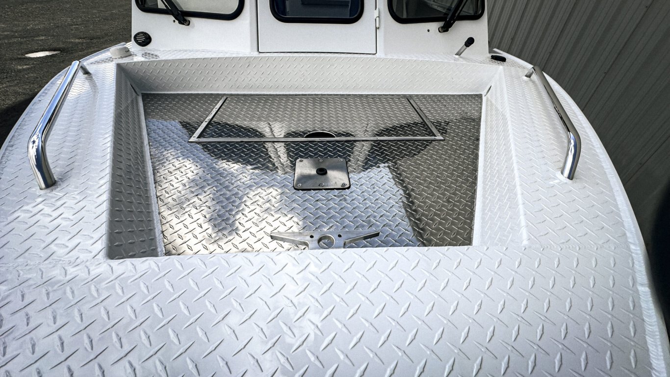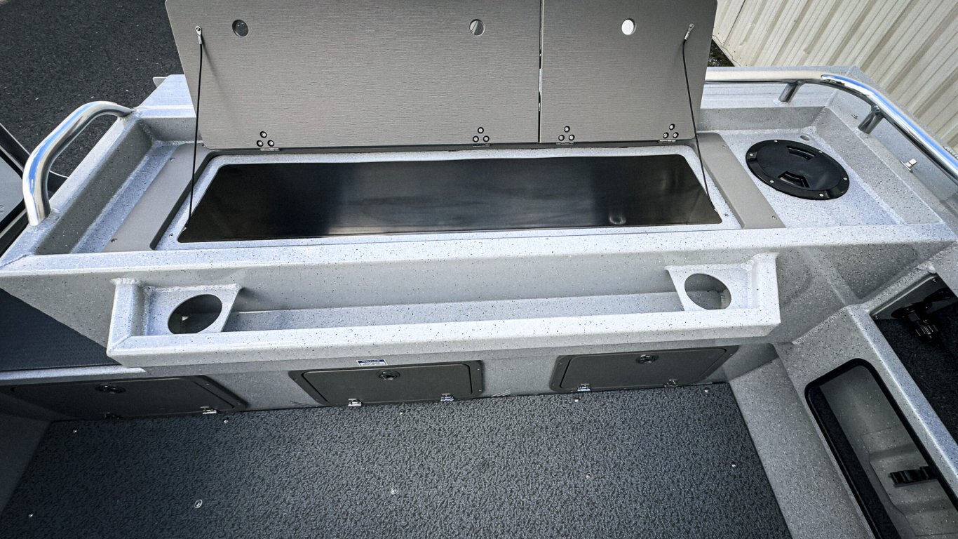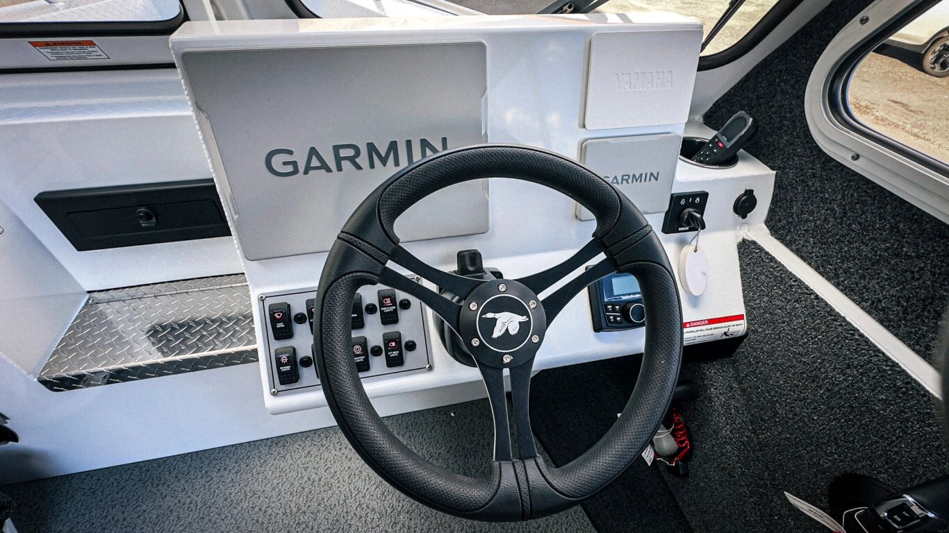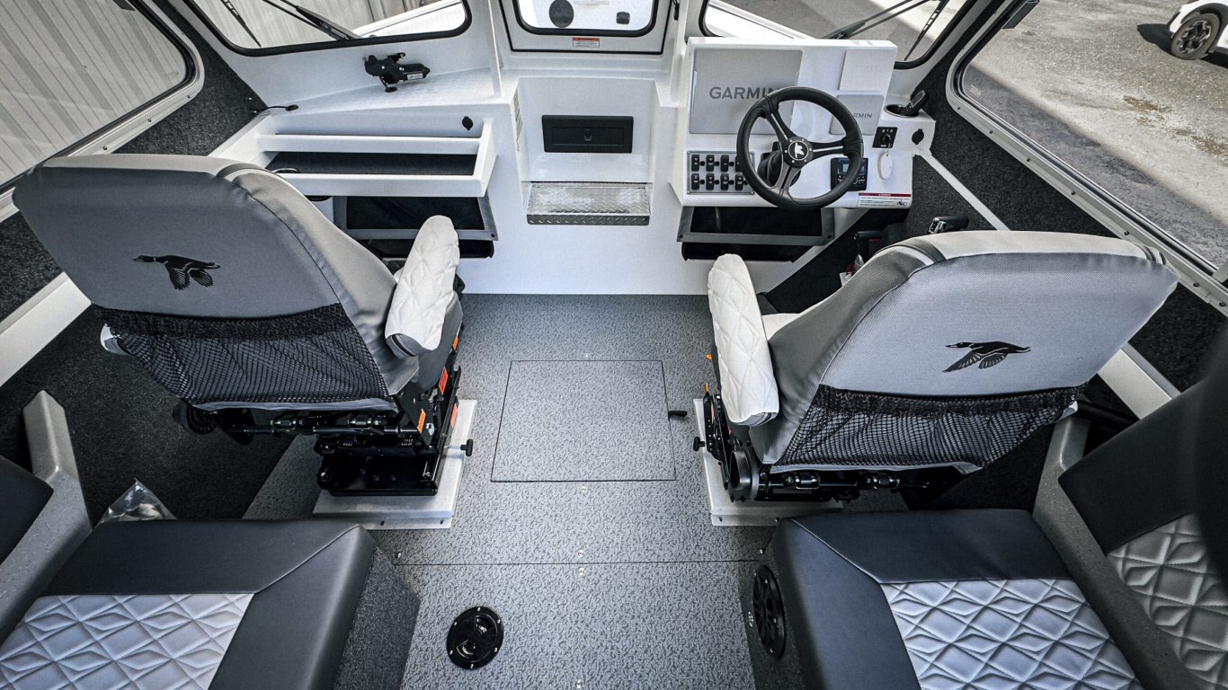 The offshore bracket design maximizes cockpit space while improving balance and ride quality. Inside, you’ll find a layout built for real anglers — generous deck space, smart storage, fish boxes, and the option for hardtop protection to extend your Canadian boating season.